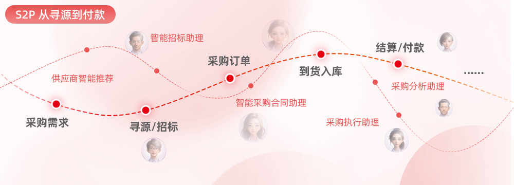 提供从寻源、合同到付款的端到端全流程管理,针对企业采购全品类,提供战略寻源、供应链协同和智能化采购能力。旨在实现企业采购业务全过程可视,通过全面采购支出分析和采购品类策略,运用智能化技术辅助采购业务与过程决策,实现采购降本并保障采购绩效达成,持续提升企业供应链竞争力。