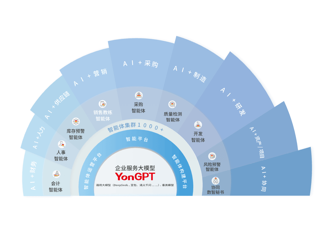 用友面向制造型及多工厂,按规模分层构建研产供销服全链路一体化数智制造平台,支撑集团统一管控、多厂协同与精益生产