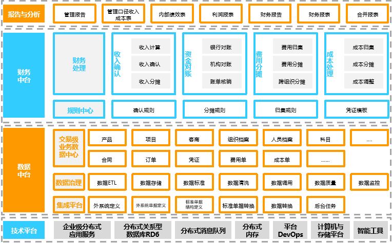■ 松耦合实现业财一体化。集成前端多业务系统采集数据到数据中台,打通业务系统与财务系统的信息流处理,实现业务财务处理自动化,保证财务核算的及时性和准确性。