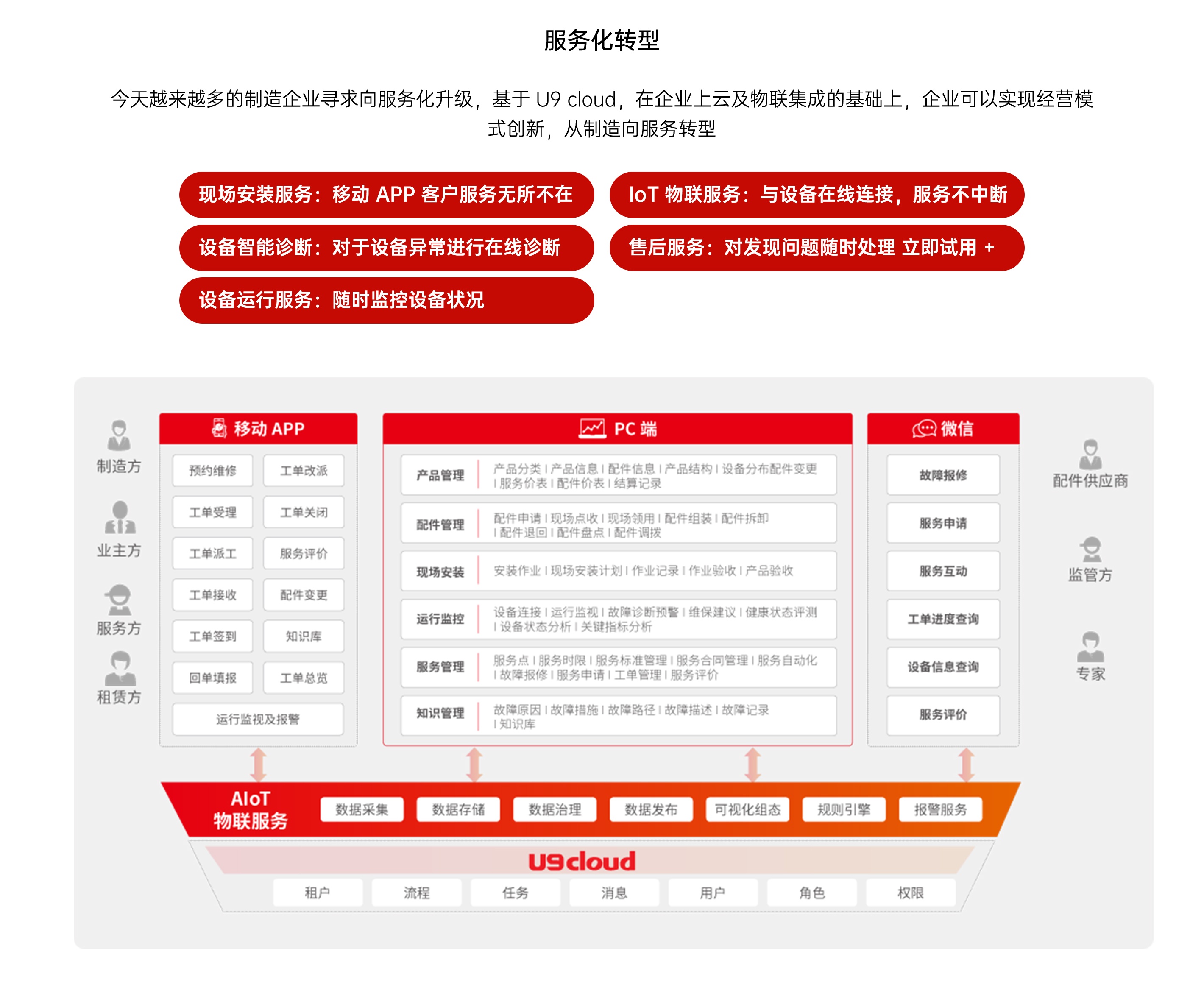 用友面向制造型及多工厂,按规模分层构建研产供销服全链路一体化数智制造平台,支撑集团统一管控、多厂协同与精益生产