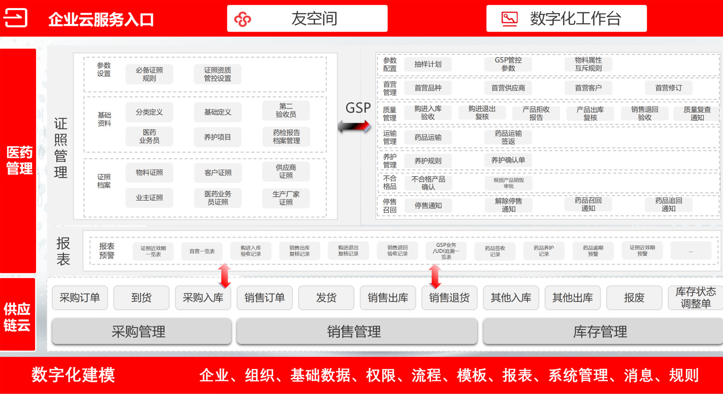 能将企业供应链、CRM、HR、行政办公、财务等内部各种业务纳入统一平台,并能横向扩展或纵向深入应用,若有制药背景或其他产业,也能纳入统一平台