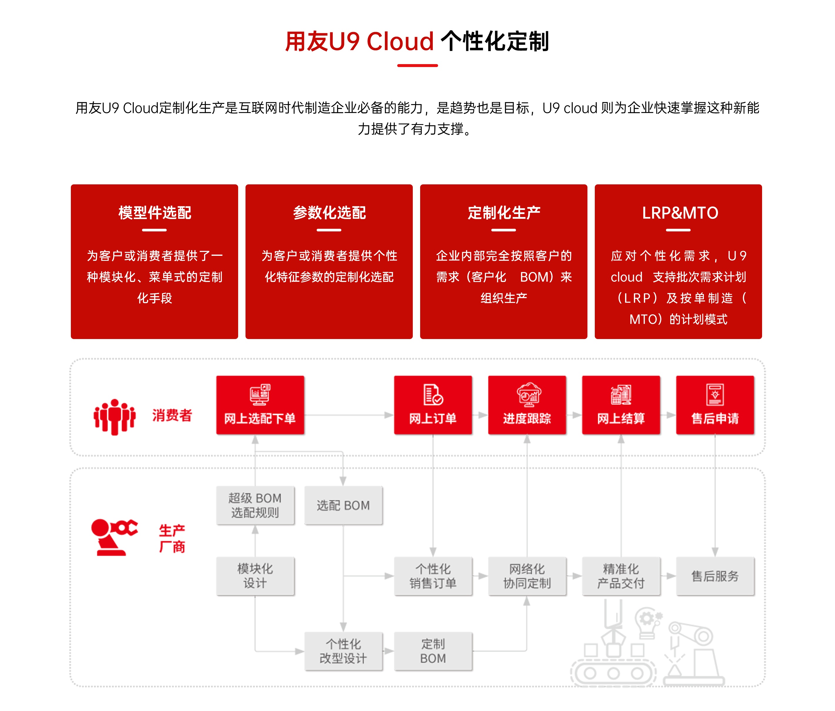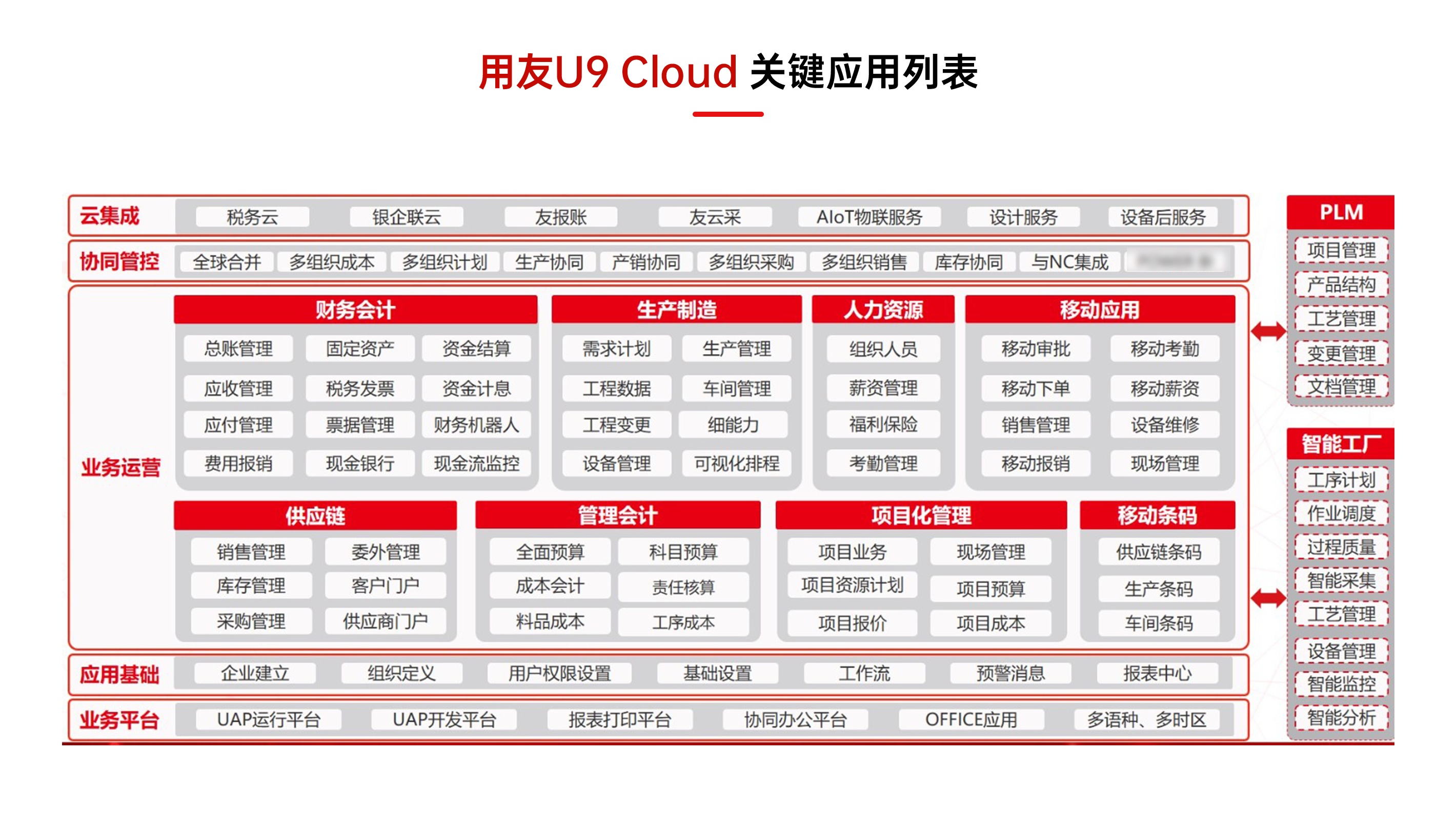 用友面向制造型及多工厂,按规模分层构建研产供销服全链路一体化数智制造平台,支撑集团统一管控、多厂协同与精益生产