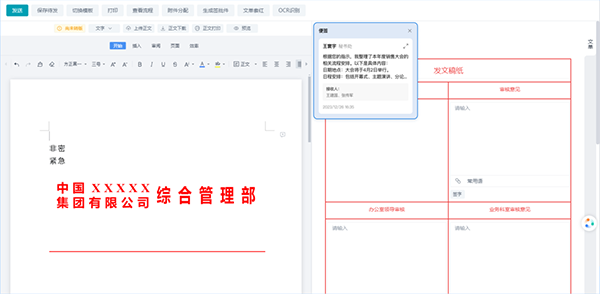 支持附件上传、注释添加,便于秘书拟办、领导参考。