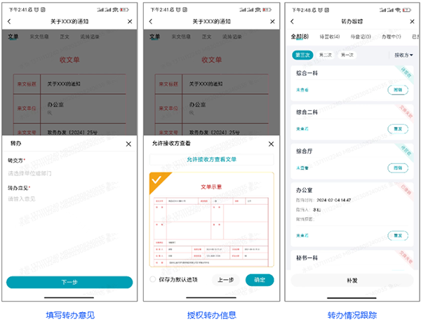 支持公文分发、签收、登记、转办等操作在移动端完成;